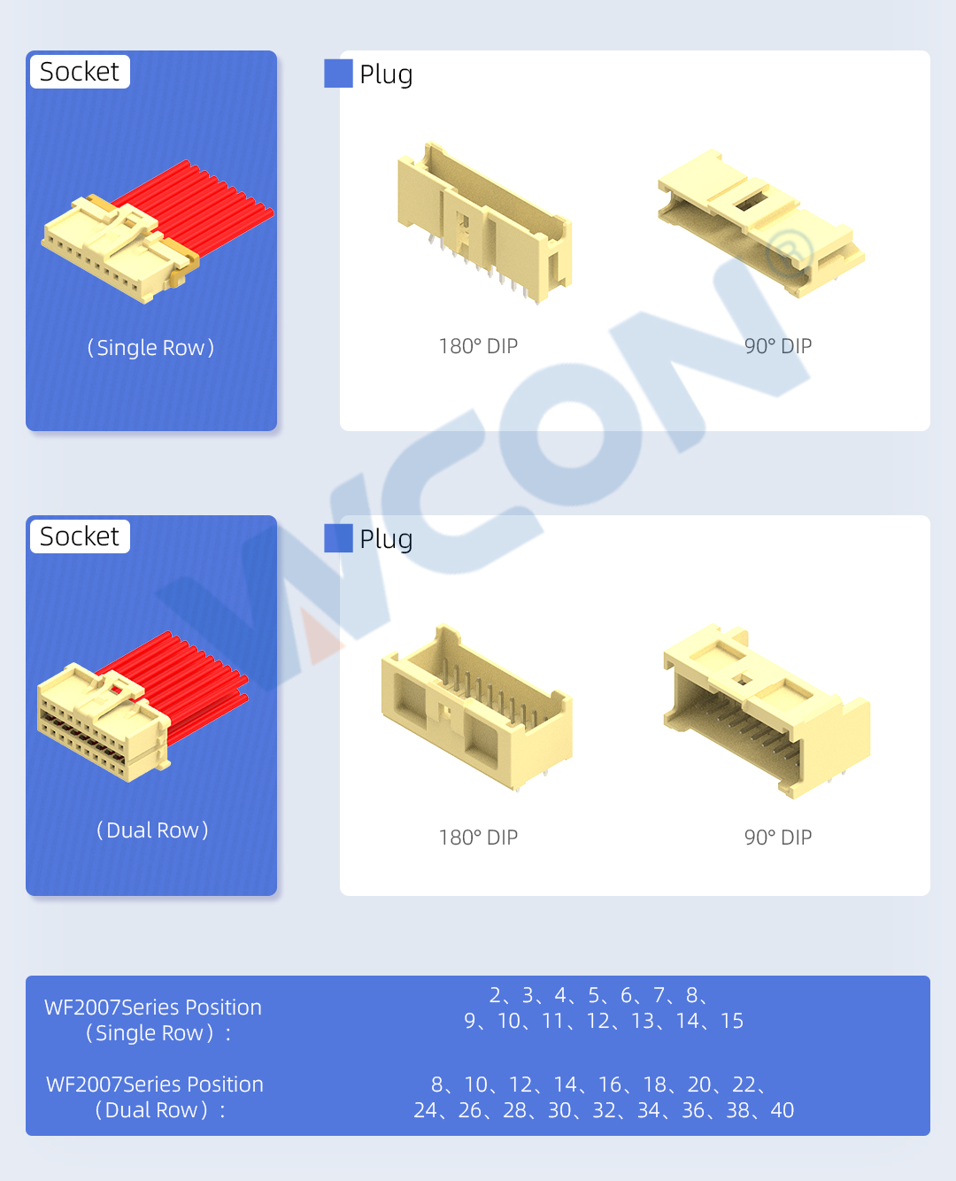 Conector da Série WF2007: Passo 2,0mm, Travamento Dupla, Design Robusto de Contato Duplo