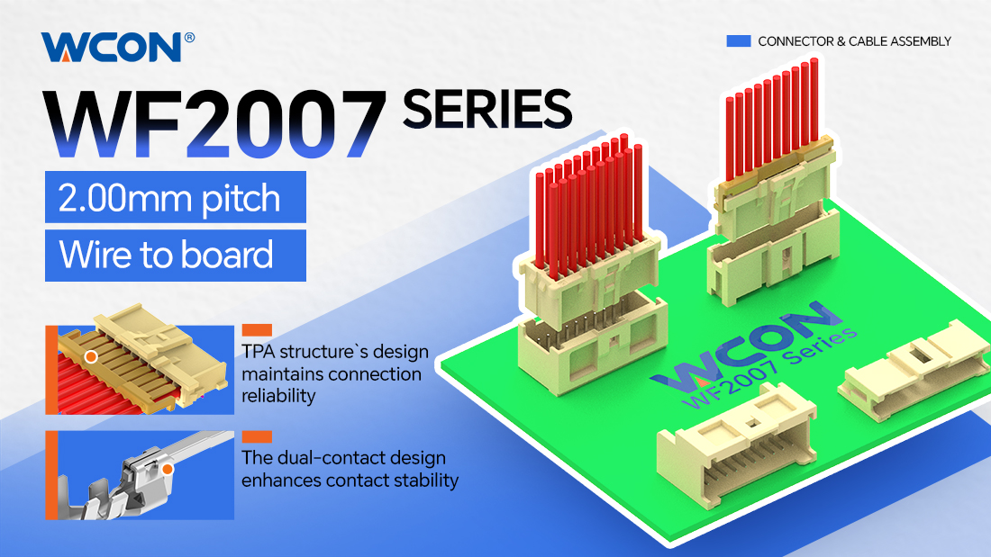 À medida que a eletrônica automotiva e os sistemas industriais de automação exigem uma confiabilidade cada vez maior na transmissão de sinais, conectores de alta densidade e resistentes a vibrações com passo fino tornaram-se críticos. A série WF2007 da WCON Electronics é um conector de alta densidade com passo de 2,00 mm, apresentando designs de fileira única e dupla para aplicações compactas. As opções de extremidade de fio incluem terminais TPA com mecanismos de travamento secundários, enquanto o design de terminal de contato duplo garante conexões estáveis.